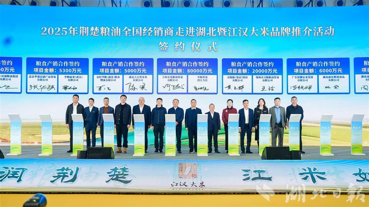 湖北日报讯(记者陈莉霖、通讯员吴王阳峥)12月12日,在第24届荆楚粮油精品展示交易会上,现场达成35亿余元签约,敲定20多个重点产销合作项目。其中,湖北康宏粮油有限公司与广东银鹏农业发展有限公司的成功签约,是湖北省持续打造“江汉大米”区域公用品牌的成效体现。